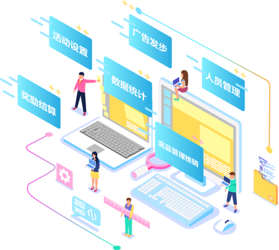 游戏工具化,提供丰富的功能玩法配置,方便您快速的配置,如完成签到、邀请、关注、购物等任务获得奖励。从活动设置、奖品管理核销、广告发布,到人员管理、奖励结算,以及全面详细的数据统计。